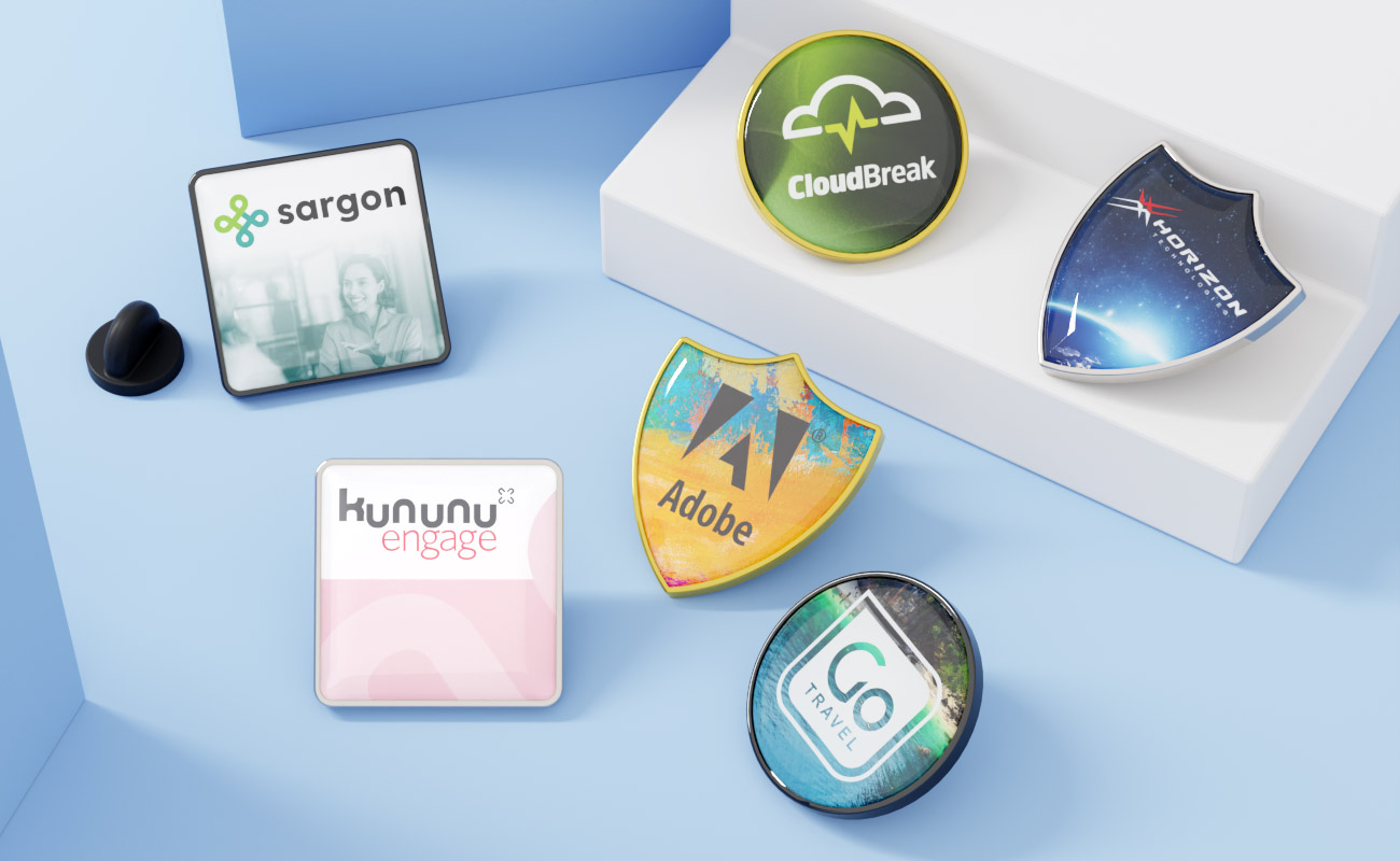 Merit is our stylish custom badge that combines vibrant photo printing with a protective resin dome, creating a sleek and professional finish that’s perfect for events, recognition programs, and branded merchandise. Each Merit badge is produced using high-resolution photo printing, allowing you to showcase detailed logos, gradients, and complex artwork that wouldn’t be possible with traditional enamel coloring. The design is then sealed beneath a clear resin dome, which enhances color depth while protecting the artwork from everyday wear. Merit badges are available in three classic shape options – Square, Circle, or Shield – giving you the flexibility to match the style of your brand, team, or event.