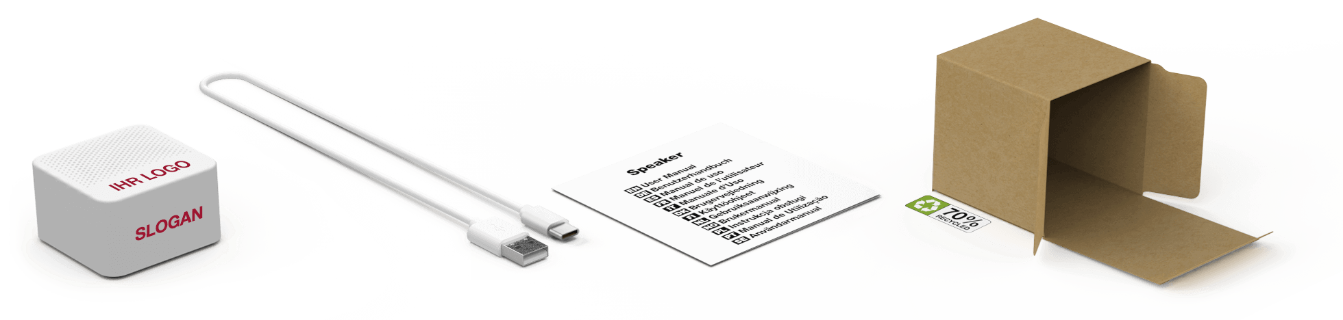 Der Bluetooth Name wird angezeigt wenn sich der Kunde, via Smartphone oder Tablet, zu dem Audio-Gerät verbinden will. Sie haben die Möglichkeit diesen Namen für einen größeren Werbeeffekt zu personalisieren. Wenn Sie diesen Service nicht wünschen, wird der sichtbare Name 'Promo Audio' sein.Zubehör