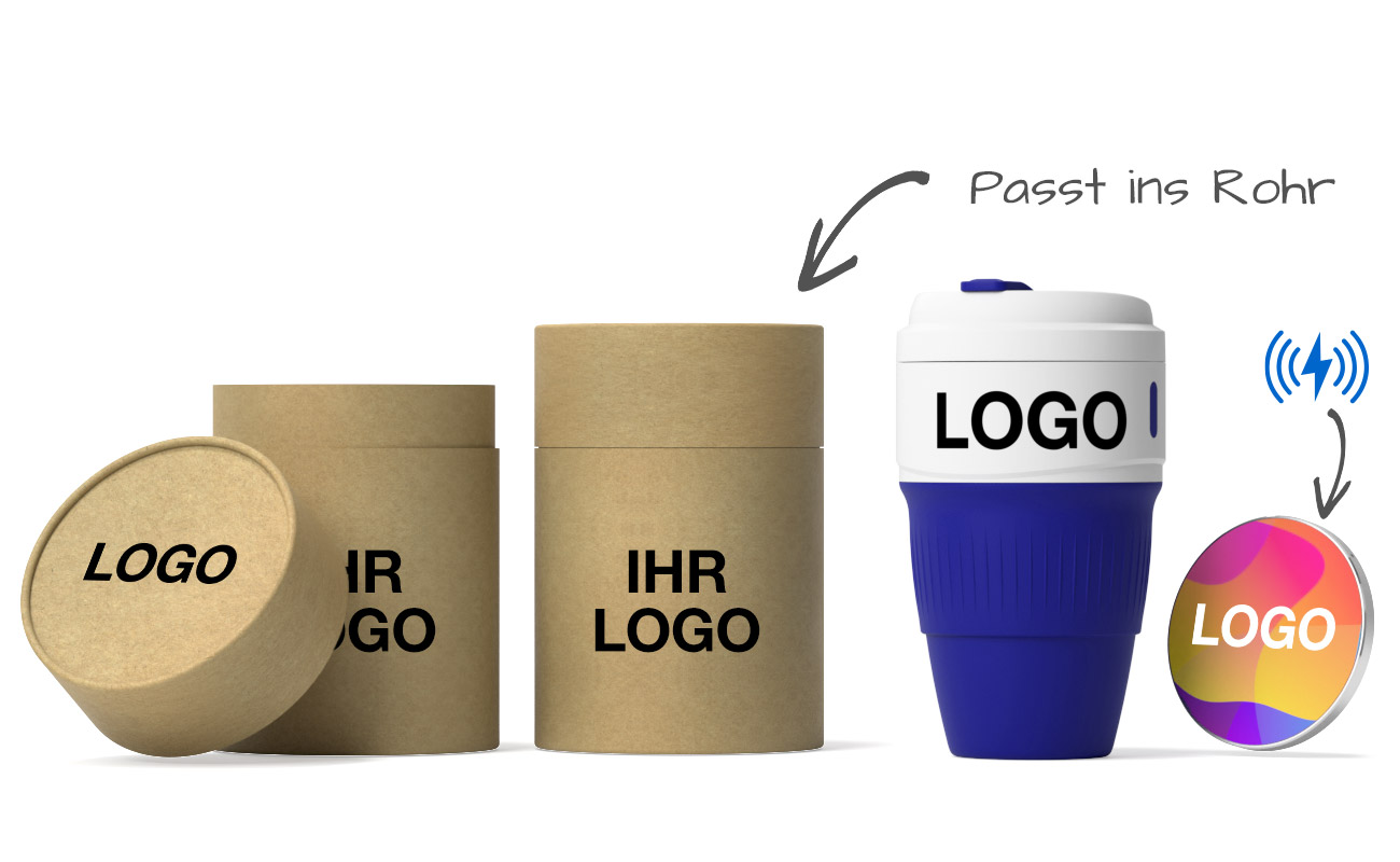 Das Muse Geschenkset kombiniert einen Reisebecher und ein kabelloses Ladegerät in einer praktischen Verpackungsröhre, die mit Ihrem Logo versehen und an Mitarbeiter, Kunden oder Messebesucher verteilt werden kann. Kontaktieren Sie uns noch heute bezüglich Preisen, Branding, Lieferzeiten und Kombinationsmöglichkeiten.