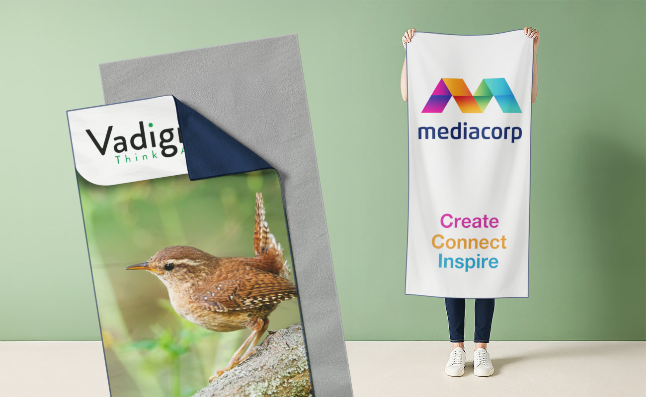 Hinterlassen Sie einen bleibenden Eindruck mit dem Miami Towel, einem Werbetuch in Originalgröße, das Ihr Markenzeichen in lebendigen Details zeigt. Durch den Einsatz von hochwertigem Fotodruck können wir Ihre Bilder, Grafiken oder Ihr Logo in satten, klaren Farben reproduzieren, was Ihrer Kampagne einen markanten visuellen Vorteil verleiht. Mit einer Breite von 750 mm und einer Länge von 1600 mm bietet das Miami eine große Oberfläche, die perfekt für Strände, Resorts, Spas, Hotels und hochwertige Werbeveranstaltungen geeignet ist. Seine großzügige Größe bringt Ihr Design wunderbar zur Geltung und bietet gleichzeitig Komfort und Funktionalität für den Alltag. Das stilvolle, lebendige und auffällige Miami Handtuch ist eine ausgezeichnete Wahl, wenn Sie möchten, dass Ihre Marke gesehen wird und im Gedächtnis bleibt.