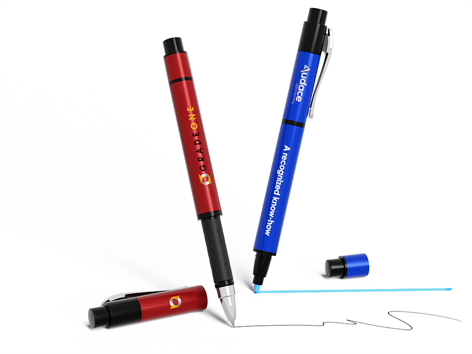 Der Accent vereint einen Kugelschreiber und einen praktischen Textmarker in einem fantastischen Modell. Wir können Ihr Logo auf beiden Seiten des Körpers und auch auf der Kappe anbringen. Der Accent verfügt außerdem über einen praktischen Clip und einen bequemen Griff - so ist sichergestellt, dass er täglich benutzt wird und Ihr Logo optimal zur Geltung kommt.