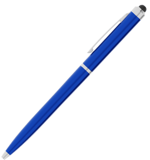 Der Sleek Kugelschreiber ist ein praktisches, funktionales Modell mit einer zusätzlichen Stylus Spitze und kann so auch für Touchscreens verwendet werden. Sie können die Mine des Kugelschreibers am oberen Ende aus- und eindrehen. Der Stift lässt sich per Fotodruck mit Ihrem Logo hervorragend beidseitig gestalten und bietet Ihnen durch die tägliche Benutzung einen großartigen Werbeeffekt.