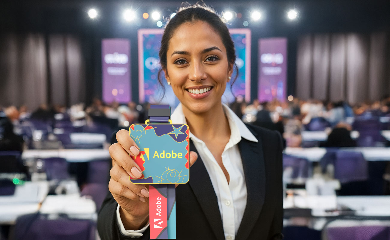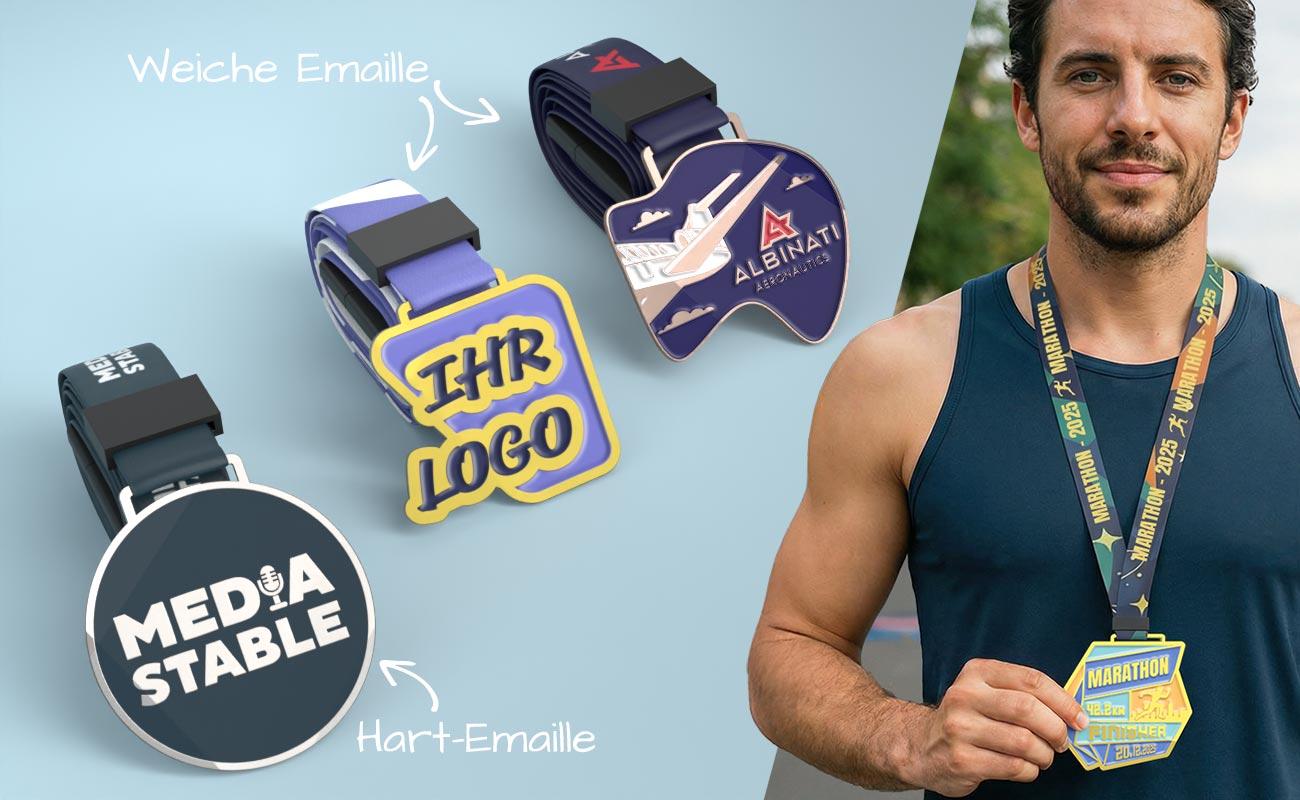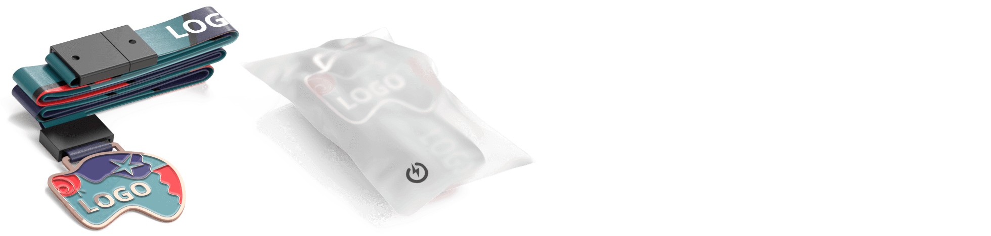 - Fügen Sie Ihr Logo und Ihren Claim auf dem Umhängeband hinzu