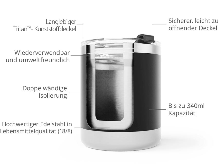 Der Crew Reisebecher hat eine doppelwandige Isolierung, welche heiße Getränke heiß und kalte Getränke kalt hält. Der Crew kommt zudem mit einem abnehmbaren Verschluss, durch welchen man auch trinken kann. Der Becher aus rostfreiem Stahl kann mit Siebdruck oder Gravur personalisiert werden. Melden Sie sich gleich bei uns für aktuelle Preise! Für einen Bambus-Touch empfehlen wir unseren .