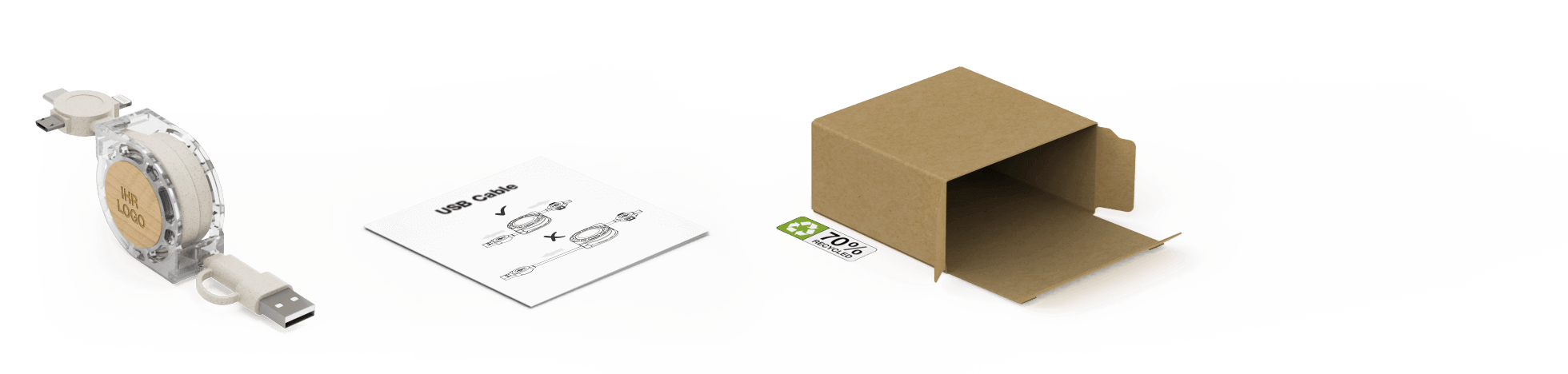 Das Kabel ist aus Weizenstroh-Biokunststoff gefertigt und bietet eine umweltfreundliche Lösung, die mit den nachhaltigen Praktiken Ihrer Marke übereinstimmt. Der Druckbereich ist aus FSC-zertifiziertem Holz gefertigt, um das Thema Nachhaltigkeit weiterzuführen. Füllen Sie noch heute ein Schnellangebot aus, um eine individuelle Preisliste zu erhalten und mit der Gestaltung Ihrer Motion Wood Hubs zu beginnen!