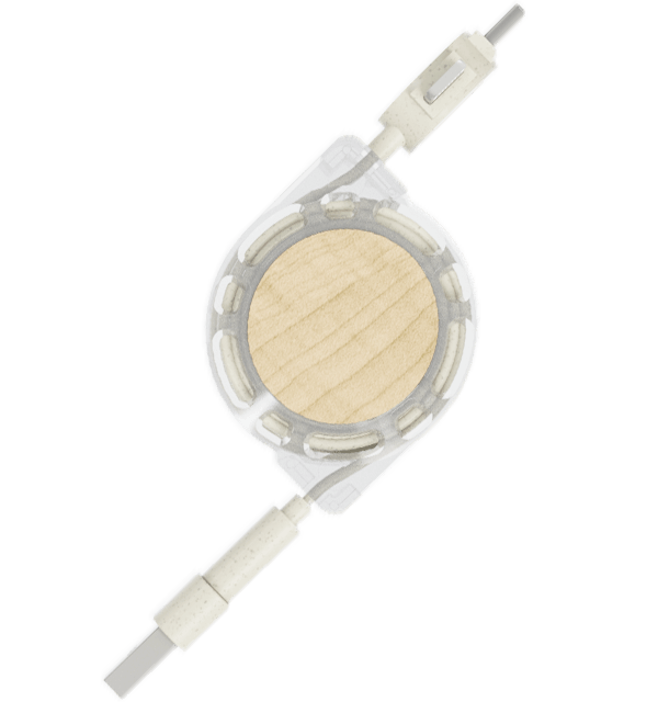Wir können das Motion Wood einziehbare Ladekabel mit Ihrem Logo, Slogan oder Kunstwerk bis ins kleinste Detail mit einer von zwei High-Tech Branding-Methoden individualisieren.