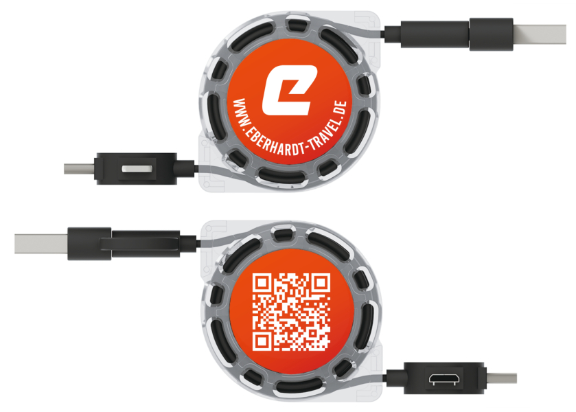 Das Motion USB-Kabel verfügt auf beiden Seiten über einen vergrößerten Druckbereich, der mit Ihrem Bild, Logo, Slogan, Veranstaltungsdetails und mehr bedruckt werden kann. Der Motion unterstützt Datentransfer- und Ladefunktionen und ist mit allen wichtigen Geräten kompatibel, Dank der 4 Anschlussmöglichkeiten, darunter ein Standard-USB-Anschluss, Micro-USB, USB-C und ein Lightning-Adapter. Sie können die Kabel ein- und ausziehen indem Sie beide Kabelenden gleichzeitig ziehen. Wenn Sie einen hölzernen Touch wünschen, sollten Sie sich unser Modell ansehen.