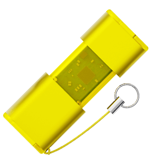 Die Blisterverpackung besteht aus transparentem PVC und einer weißen Pappeinlage und verfügt über eine Ausstanzung. Die Einlage kann auf Wunsch mit einem Digitaldruck versehen werden, des Weiteren ist Platz für optionale Umhängebänder.Bildergalerie