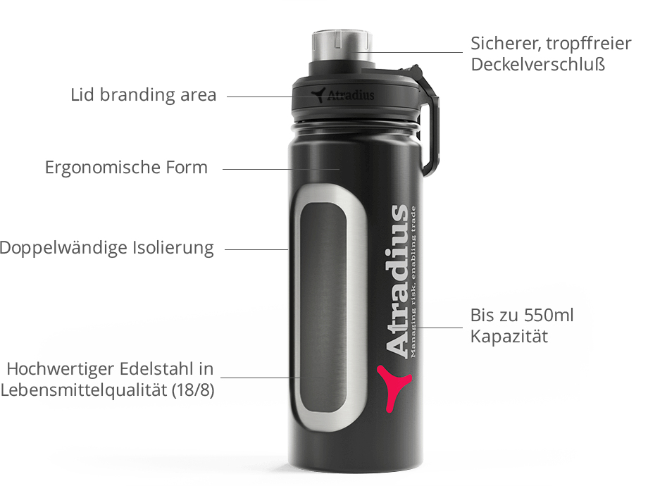 Die Adventure Wasserflasche ist ein großartiger Werbeartikel für Messegeschenke oder für interne Marketingprodukte für Unternehmen in jeder Branche.