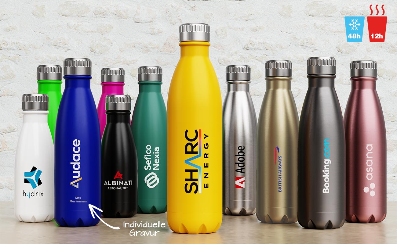 Vollständig individualisierbare Wasserflasche mit Ihrem Logo